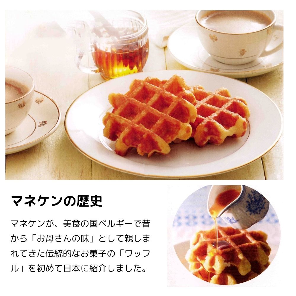 この「退職、異動、産休、節目の感謝の時に大量に配るお菓子。メッセージや名前が入りのまき紙を巻き個包装されたお菓子」を一言で言うなら何といえばいいのか。とてもとても悩んだ結果「ありがし」と名づけました。 ※ただいま、商標登録出願中です。ワッフルは美食の国ベルギーの伝統的なスイーツで、昔から「お母さんの味」として親しまれてきました。このワッフルを初めて日本に紹介したのがマネケンです。ベルギーでワッフルの製法を学び、原材料の吟味やレシピの研究など何度も試作を重ねた末、マネケン独自の新しいベルギーワッフルを作り上げました。厳選した原材料を使って焼き上げたワッフルは、「豊かなコク」と「ほどよい甘さ」が自慢で、その飽きのこないおいしさは老若男女問わず大変ご好評いただいております。